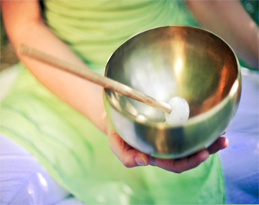 KlangwirkungsweiseVerschiedene Klanginstrumente versetzen den ganzen Körper durch die hörbaren und spürbaren Klangwellen in sanfte Schwingungen und lösen Verspannungen und Blockaden. Der Ton der Klangschale berührt unser Innerstes, er bringt die Seele zum Schwingen. Der Klang löst Spannungen, mobilisiert die Selbstheilungskräfte und setzt schöpferische Energie frei. Sie breiten sich besonders gut in Luft und Flüssigkeiten aus (unser Körper besteht aus ca. 70% Flüssigkeit). Dadurch hört und spürt man die entspannenden Klänge mit dem Körper. Es ist ein Klangergebnis, das schon seit ca.5000 Jahren für Heilzwecke in Indien und Asien eingesetzt wird. |